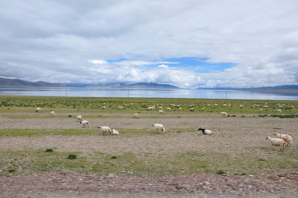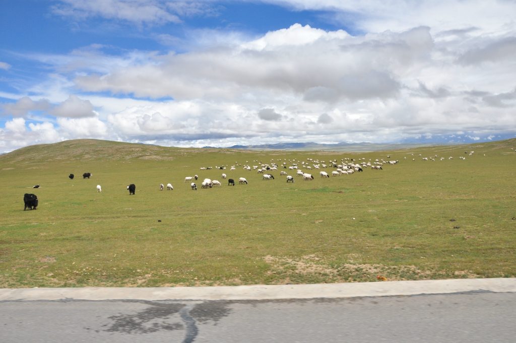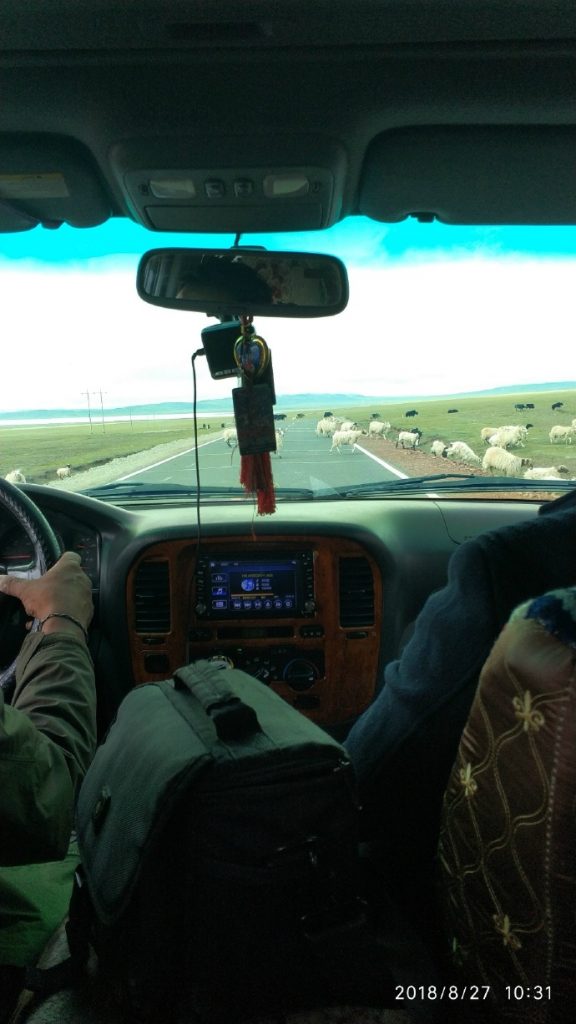 路上看到的牛和羊,这两张还比较少,路上还看到一条黑色的带子,和道路平行延伸出去,全是由牦牛组成的,估计过千了,就是不知道是不是一户的,我猜应该不是。。