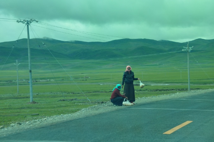路上偶尔看见的藏人,看样子是在搭便车,问了一下藏族的司机,好像这些都是义务的,顺路就带一下,也不收费。可惜我们车已经满了