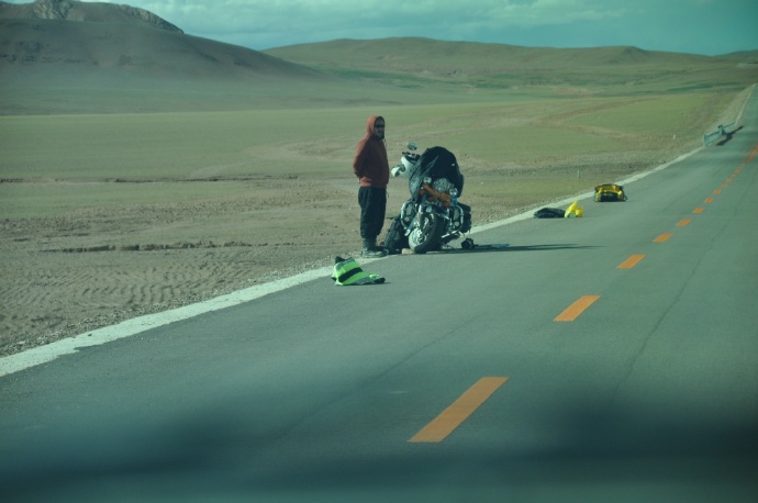 路上看见的倒霉哥们儿,车子不知道是出问题了还是摔了