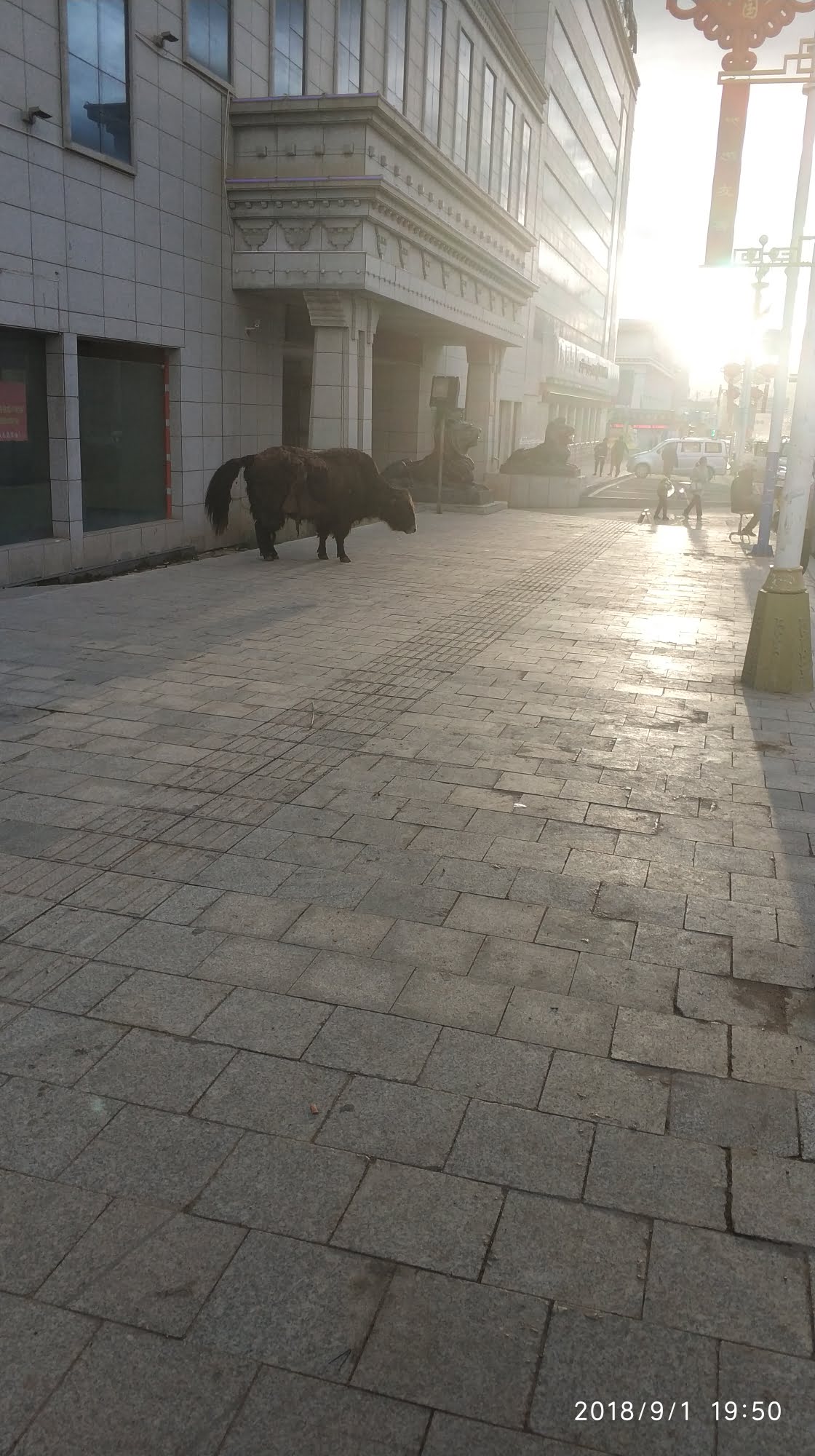 补一张后来拍摄的牦牛,拴在政府旁边,相比一般的黄牛是真的大。。